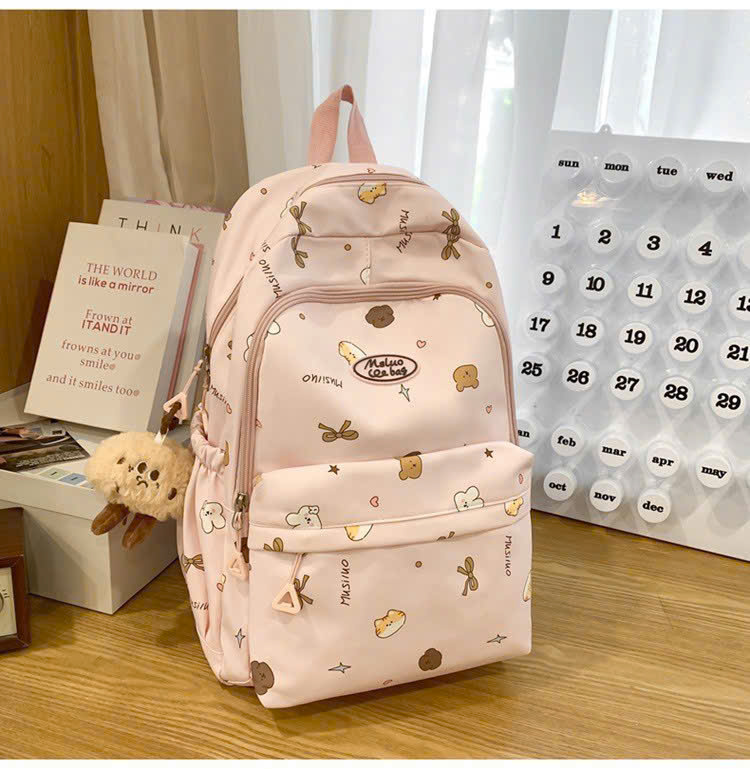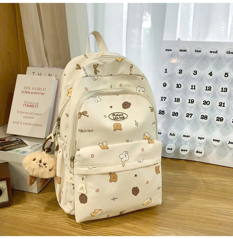 ** Balo vải MSLUO WE BAG kèm charm gấu nâu
