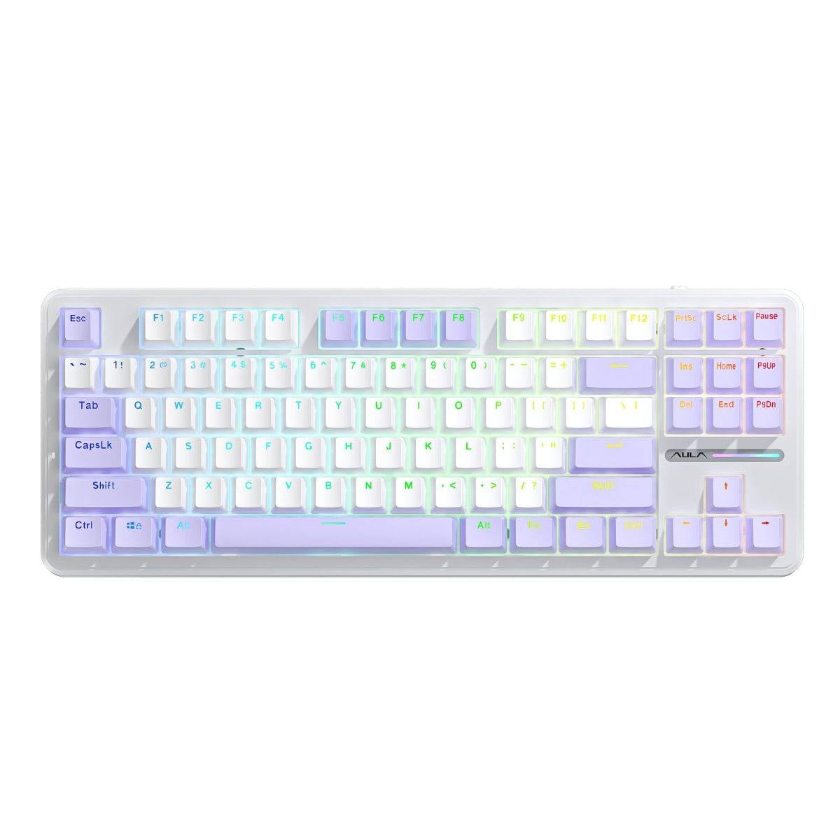 ** Bàn phím cơ có dây Aula Aula F87 Tím trắng, Blue Switch