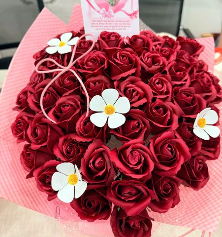 ** Bó hoa hồng cốt tròn giấy dập nổi màu hồng
