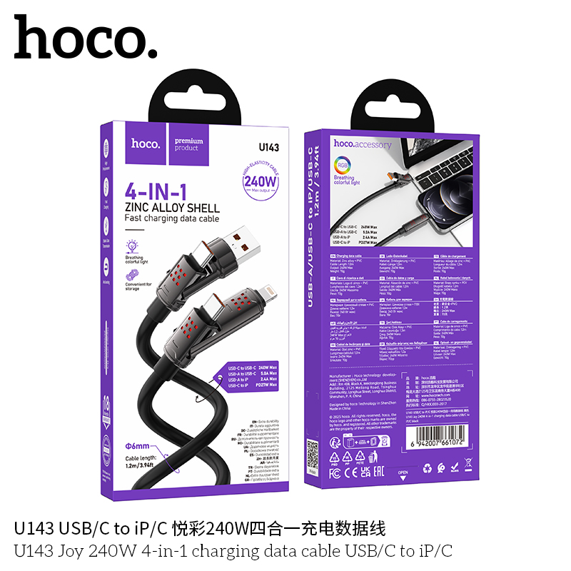 Cáp 4 in 1 Hoco U143 240W 1.2m