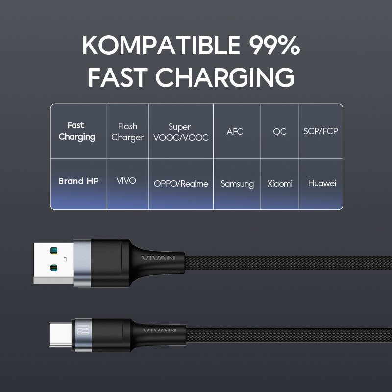 Cáp Type C Vivan VQC100S