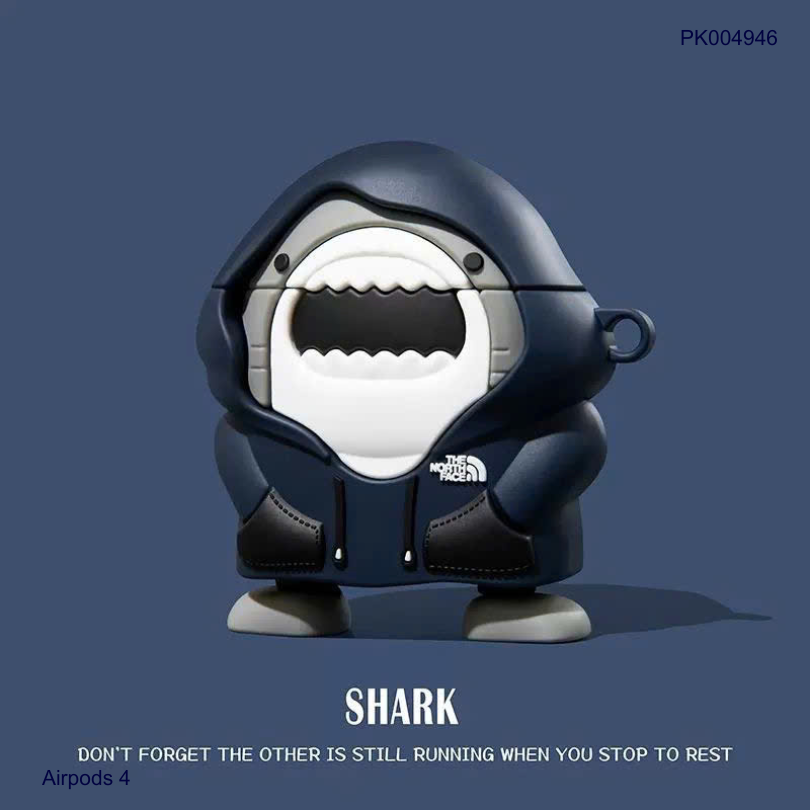 Case Airpods 4 dẻo cá mập mặc áo hoodie