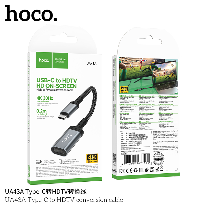 Chuyển Type C sang Hdmi Hoco UA43A 20cm