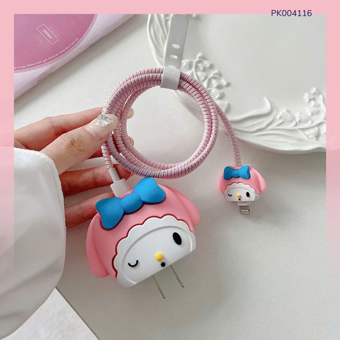 ** Combo bảo vệ, cóc, cáp sạc Melody nơ xanh