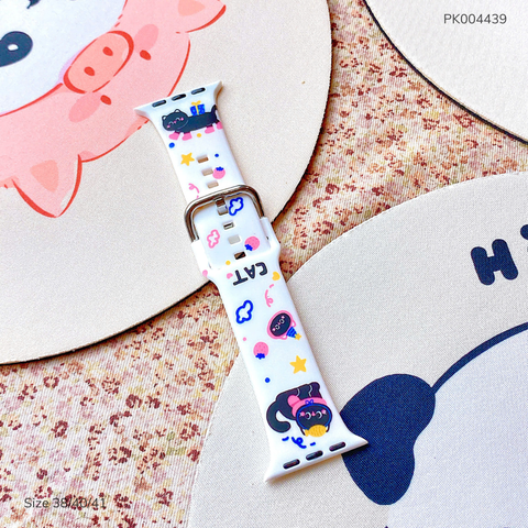 ** Dây Aw silicon mèo đen CAT nền trắng 38/40/41