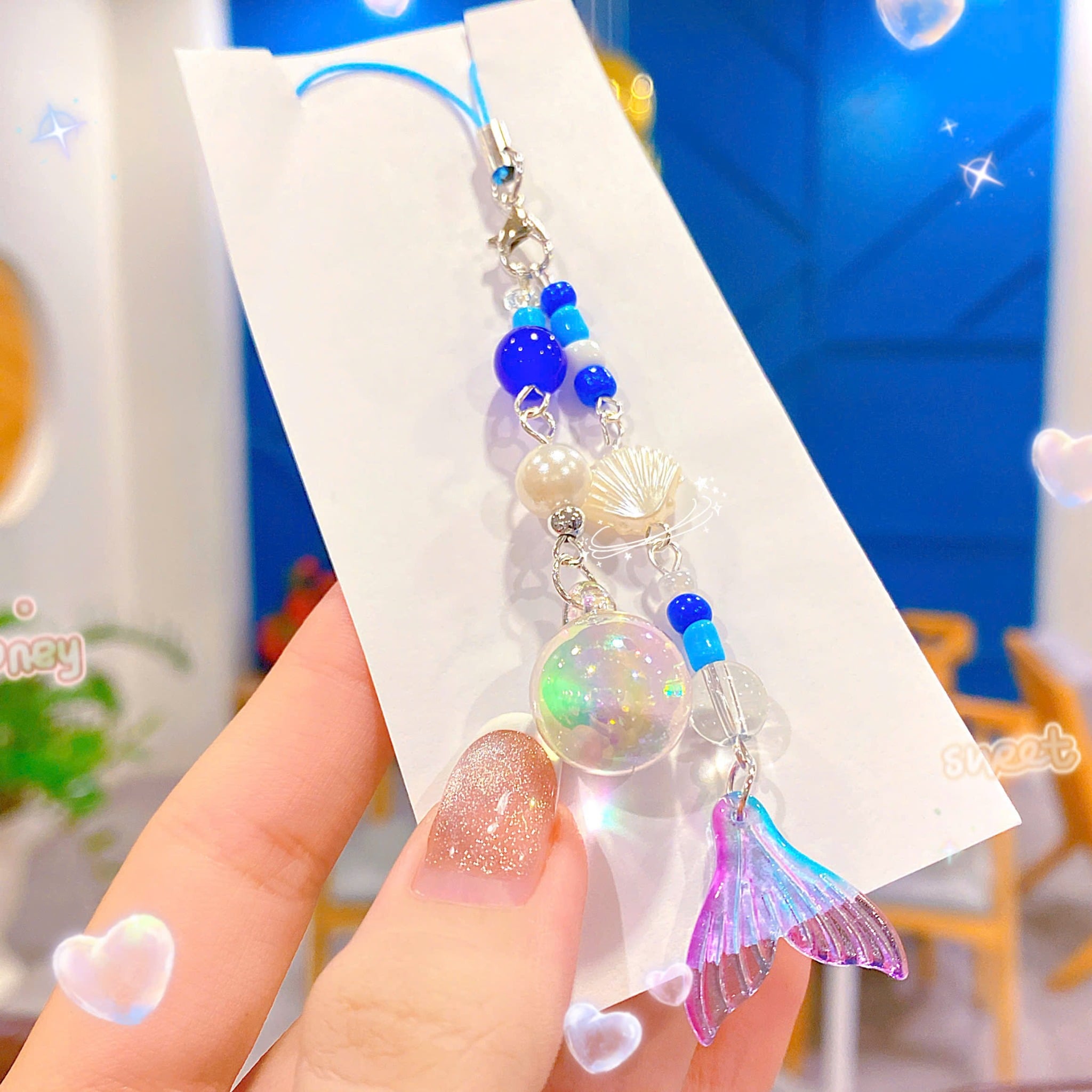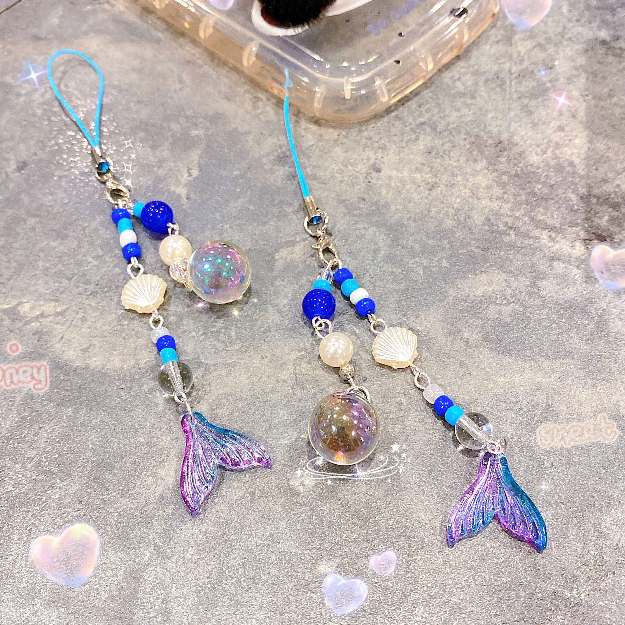 ** Dây đeo điện thoại chuỗi đuôi cá ánh tím