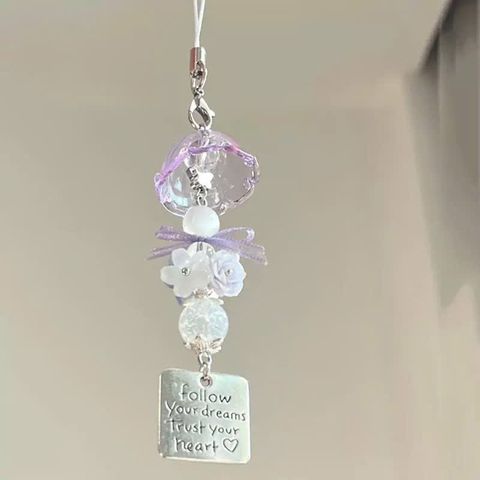 ** Dây đeo điện thoại chuông gió trong/tím mix hoa thẻ bài