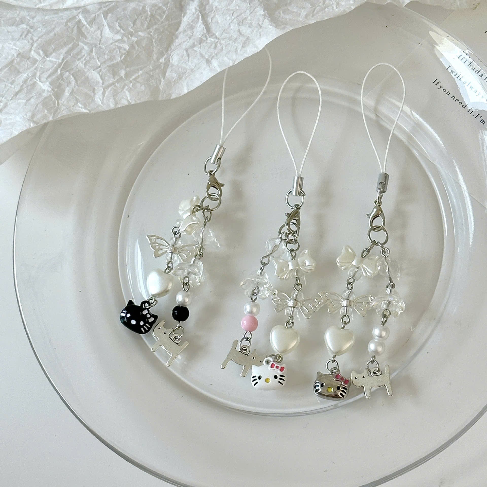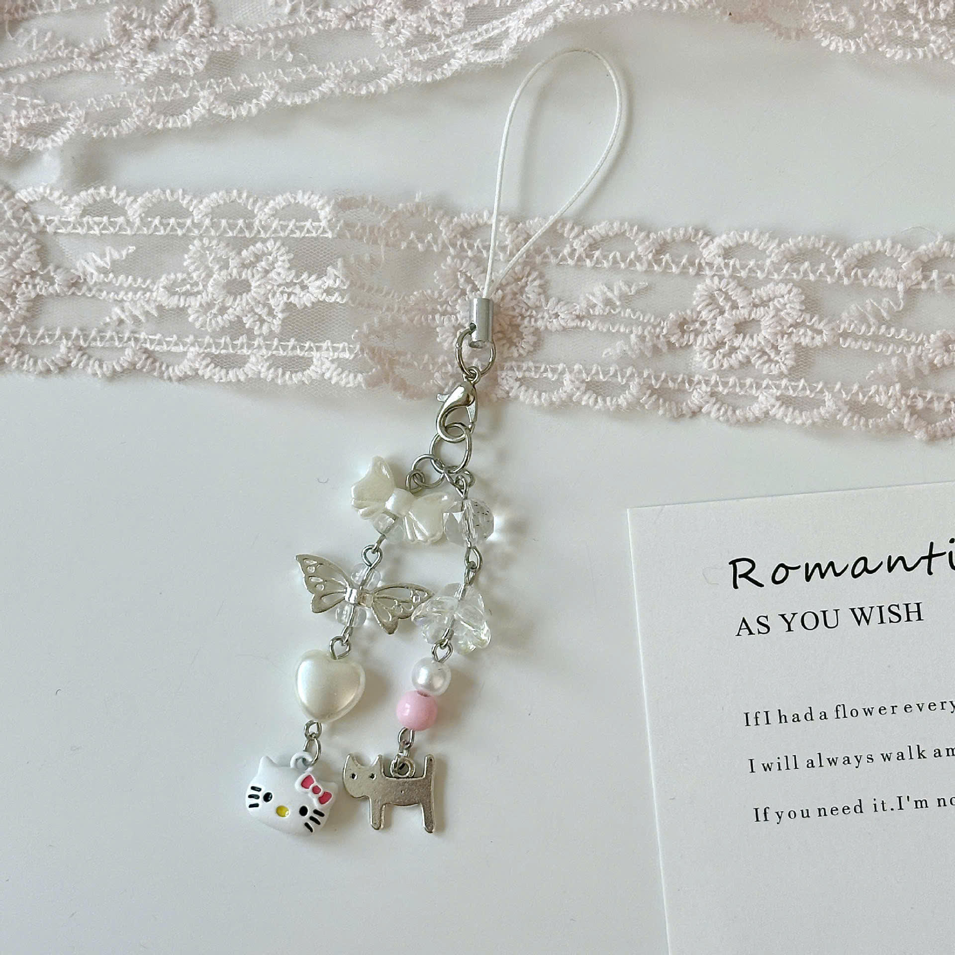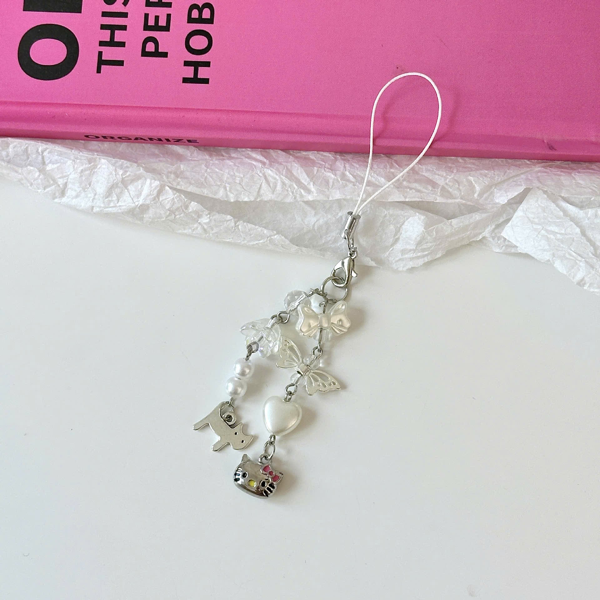 ** Dây đeo điện thoại Kitty trắng nơ hồng chổng mông