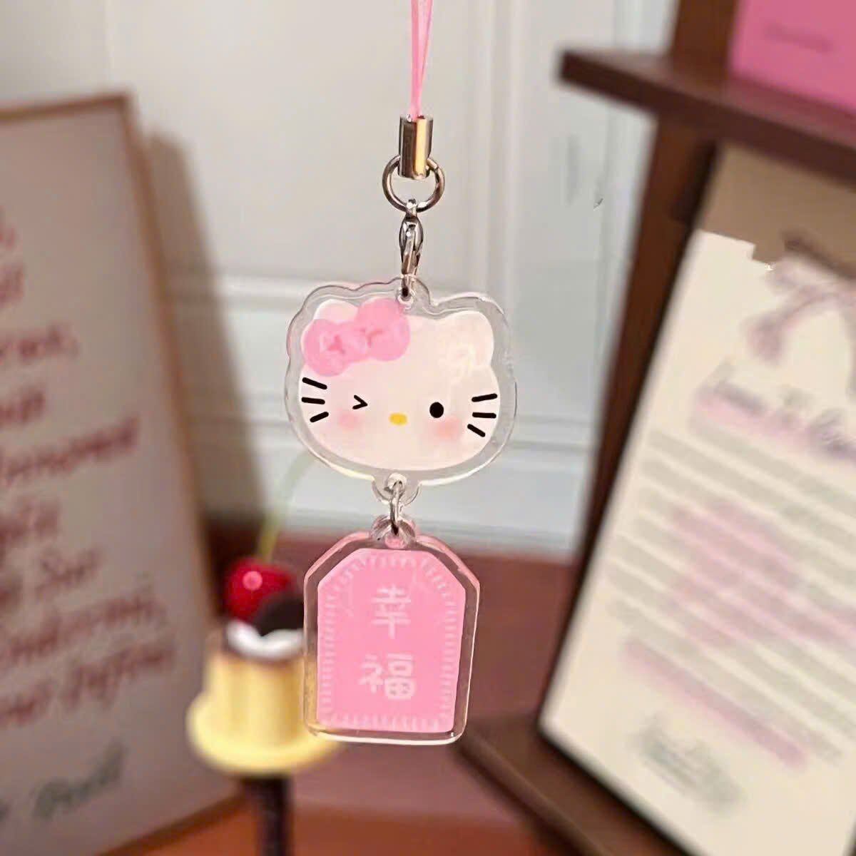 ** Dây đeo điện thoại mica 2 tầng đầu Kitty xanh/hồng kèm lời chúc