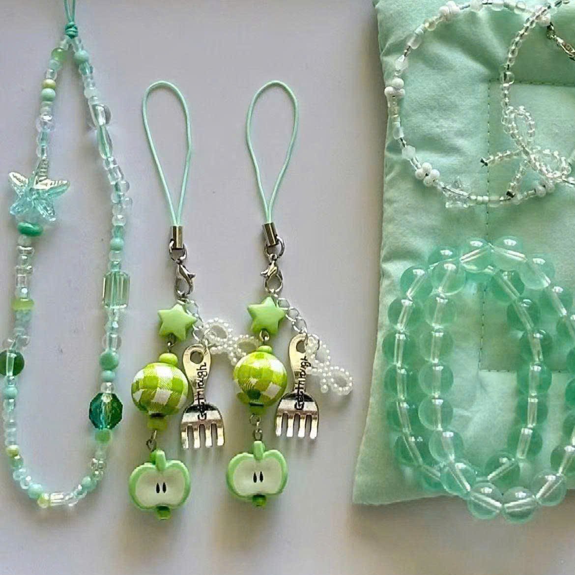 ** Dây đeo điện thoại quả cầu xanh lá nĩa bạc