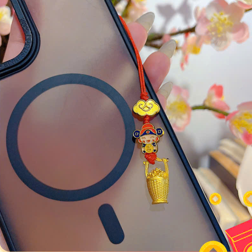 ** Dây đeo điện thoại thần tài và hủ vàng