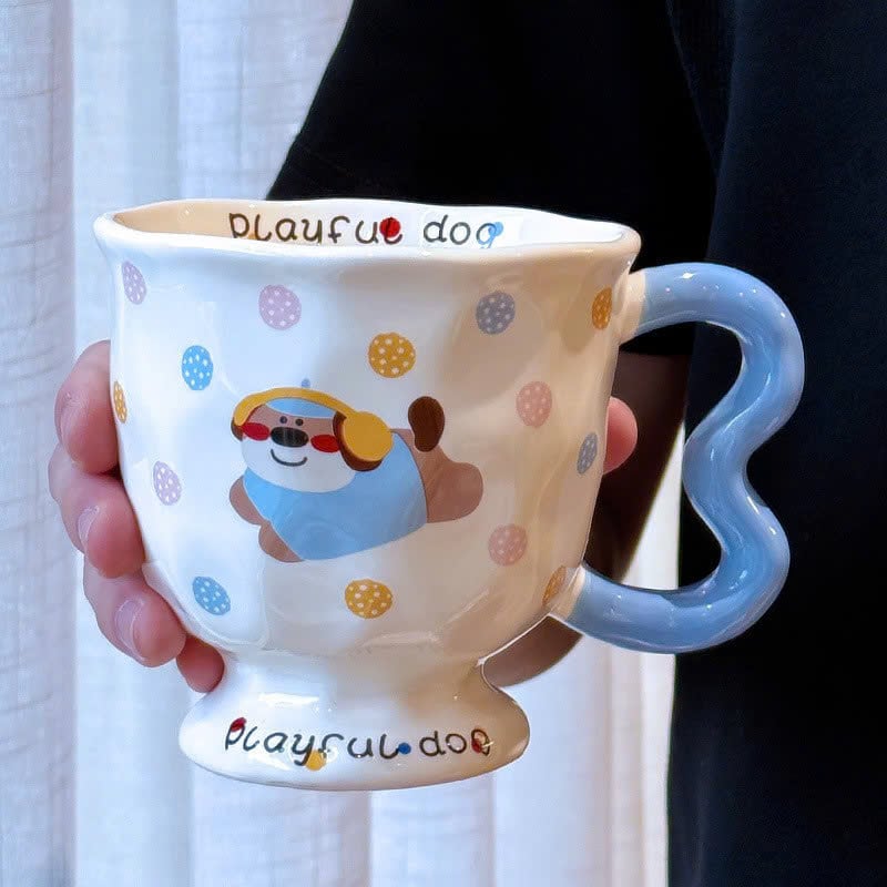 ** Ly sứ cún Lạp Xưởng xanh/hồng tay cầm + muỗng