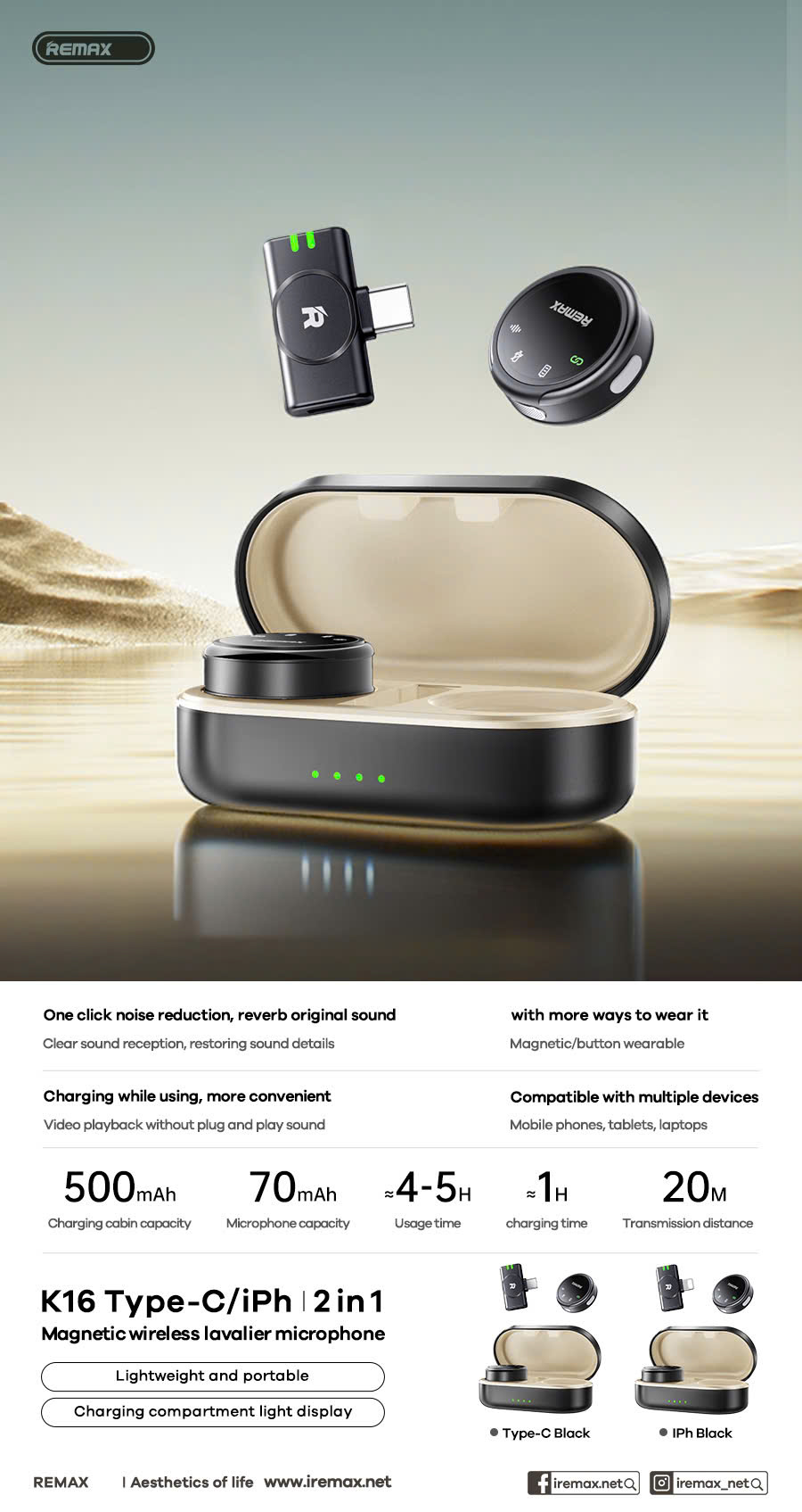 Micro cài áo Remax K16 2 Mic cổng Type C