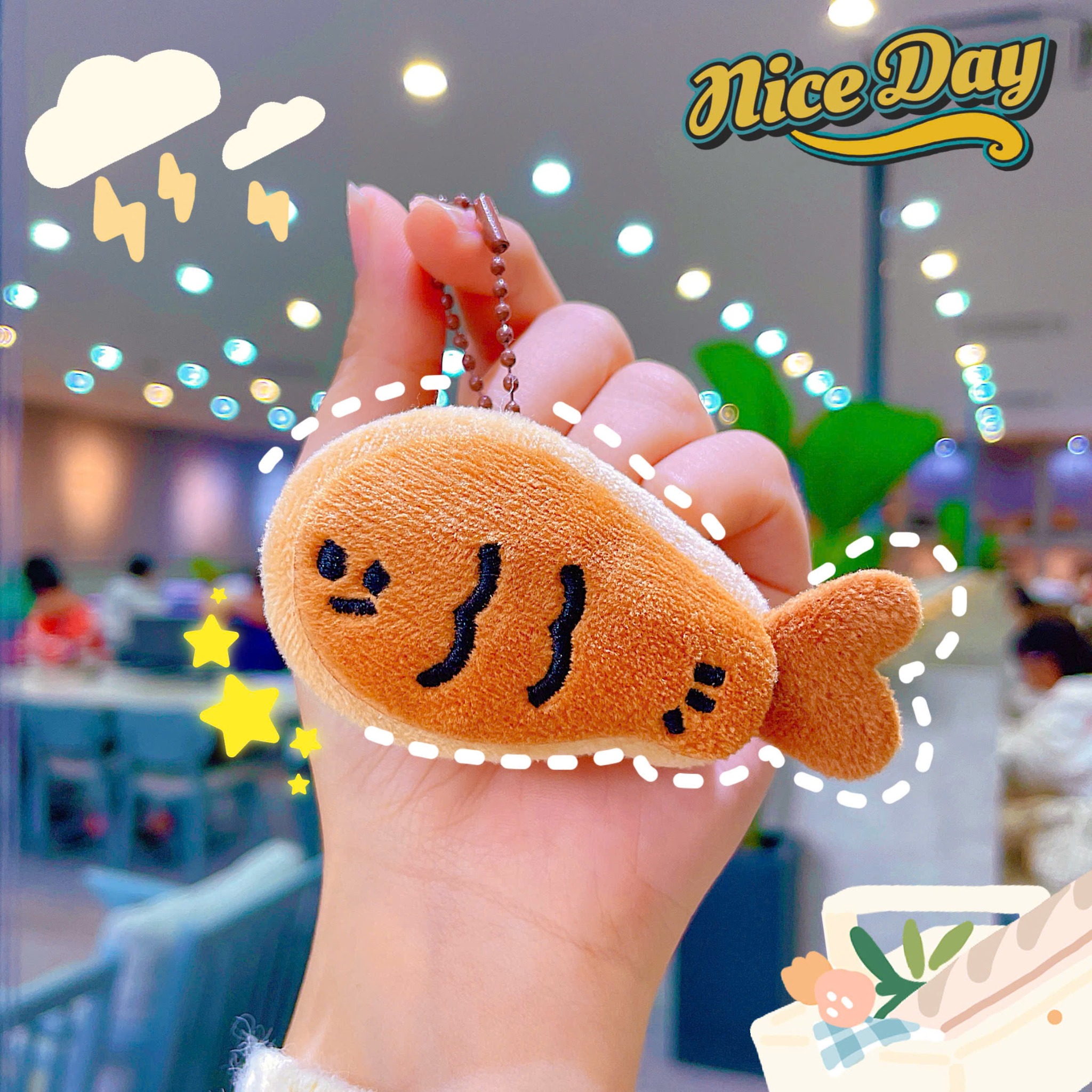 ** Móc khóa bông ba tầng mặt gấu biểu cảm màu nâu