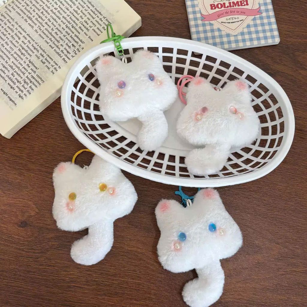 ** Móc khóa bông mèo trắng mắt long lanh đuôi cong