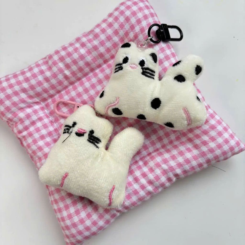 ** Móc khóa bông mèo trắng/mèo chấm bi thêu