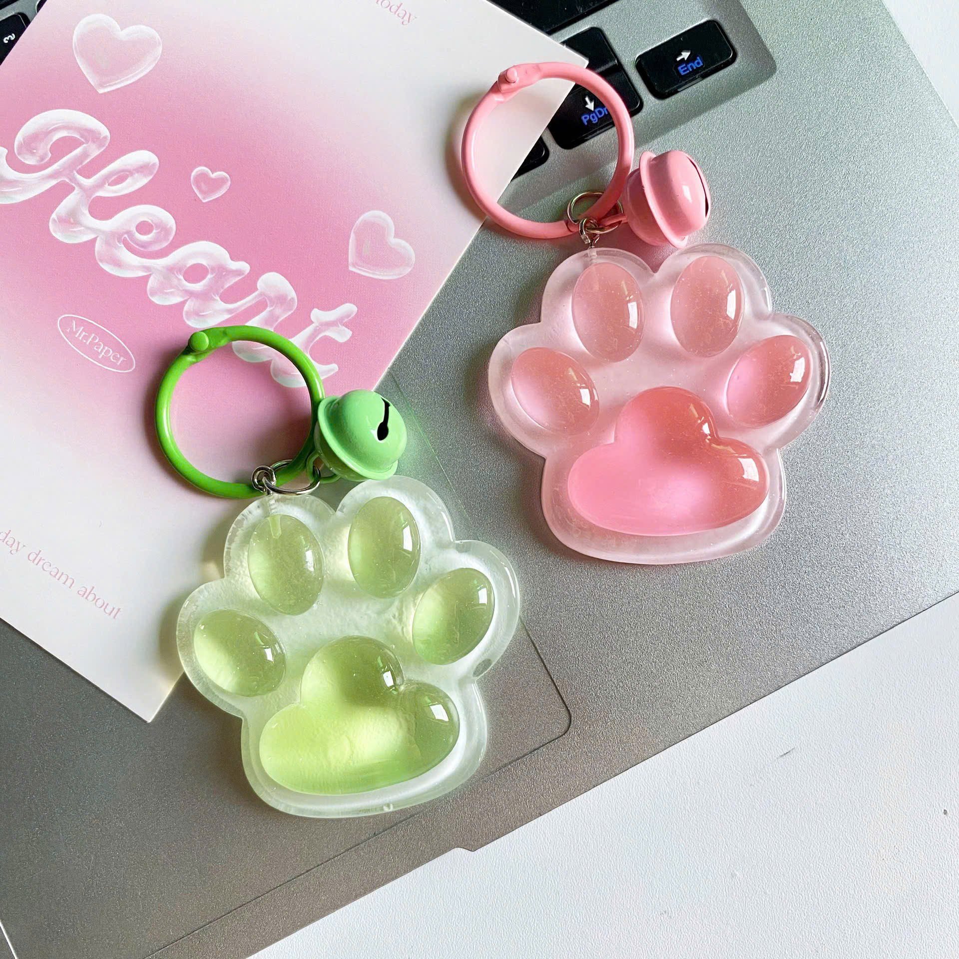 ** Móc khóa chân mèo thạch và chuông lục lạc