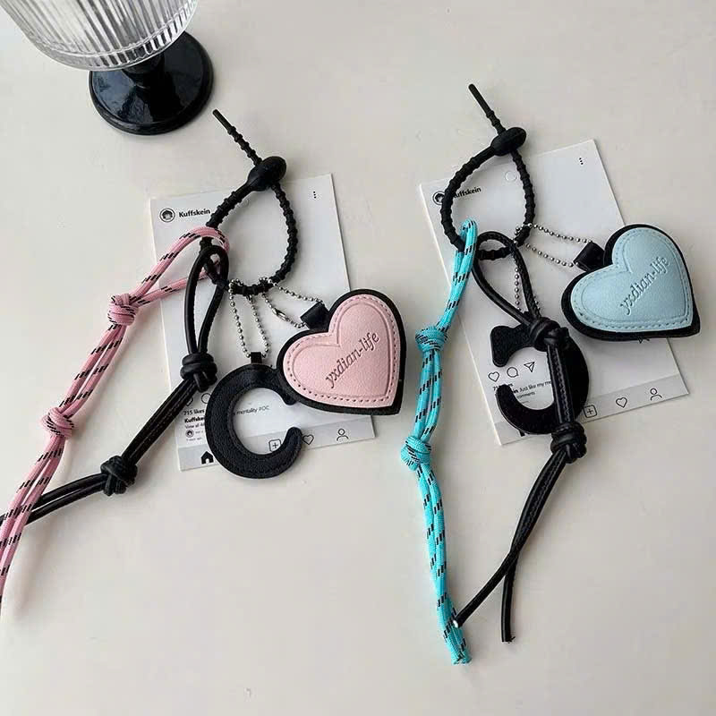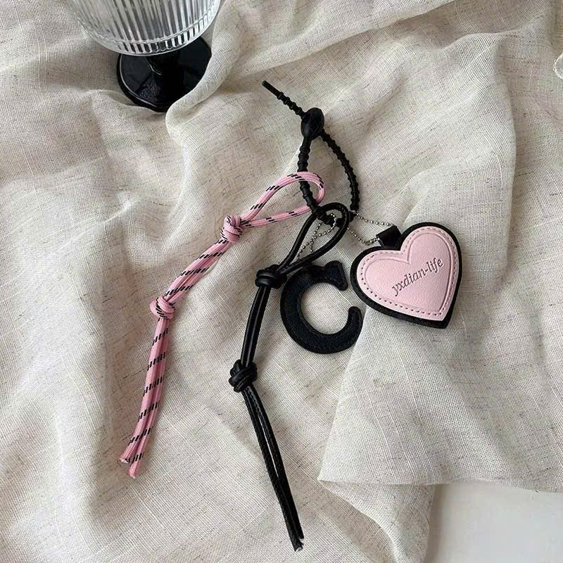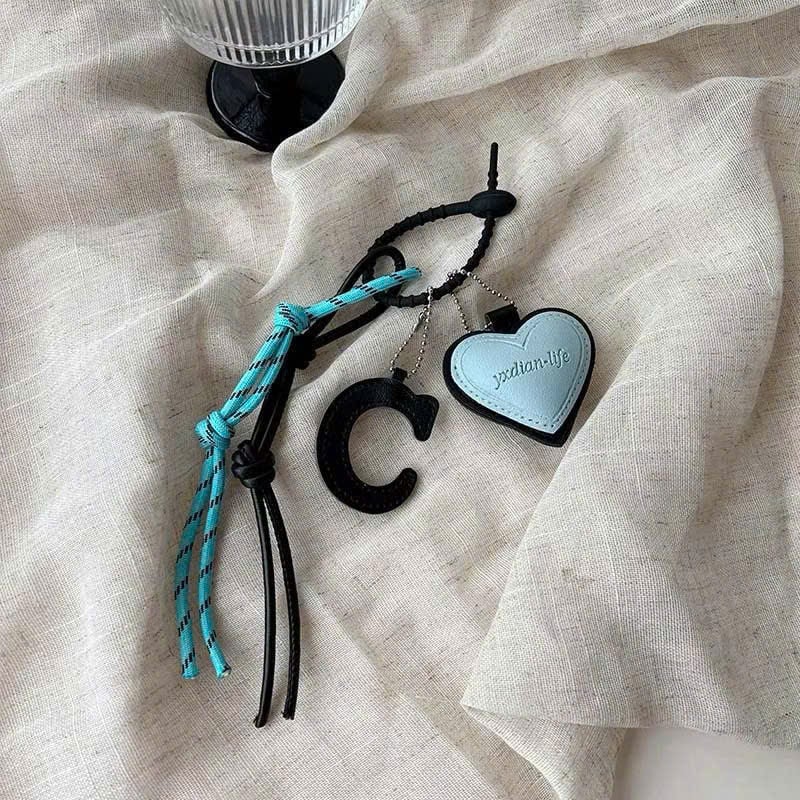 ** Móc khóa chùm trái tim chữ C hồng/xanh