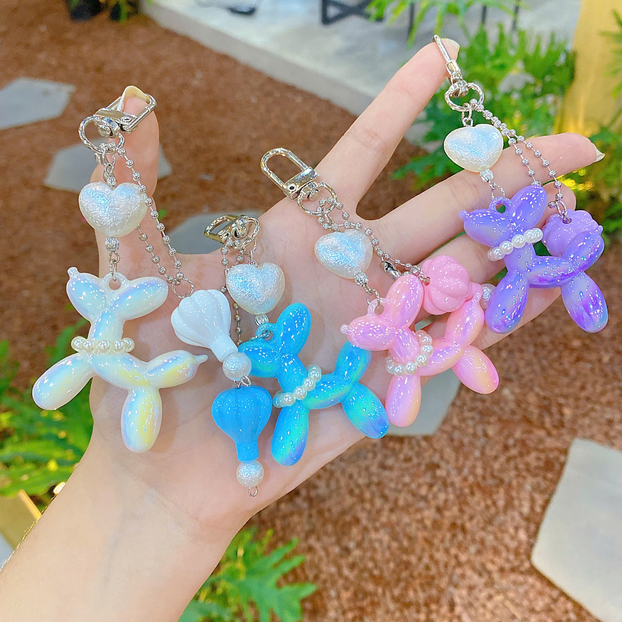 ** Móc khóa cún bóng bay khinh khí cầu tím/xanh/trắng