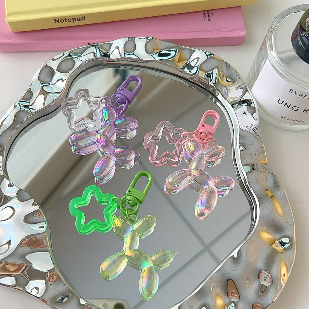** Móc khóa cún bóng bay phủ sà cừ tag trái tim tím/xanh/trắng