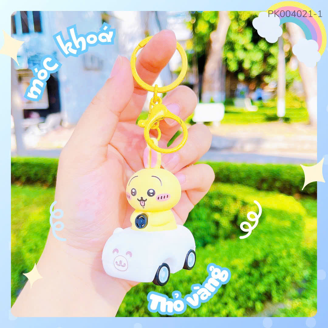 ** Móc khóa đồ chơi thỏ xe kéo trớn