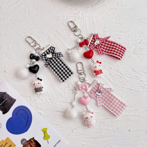 ** Móc khóa Kitty đen/đỏ charm bông nơ caro