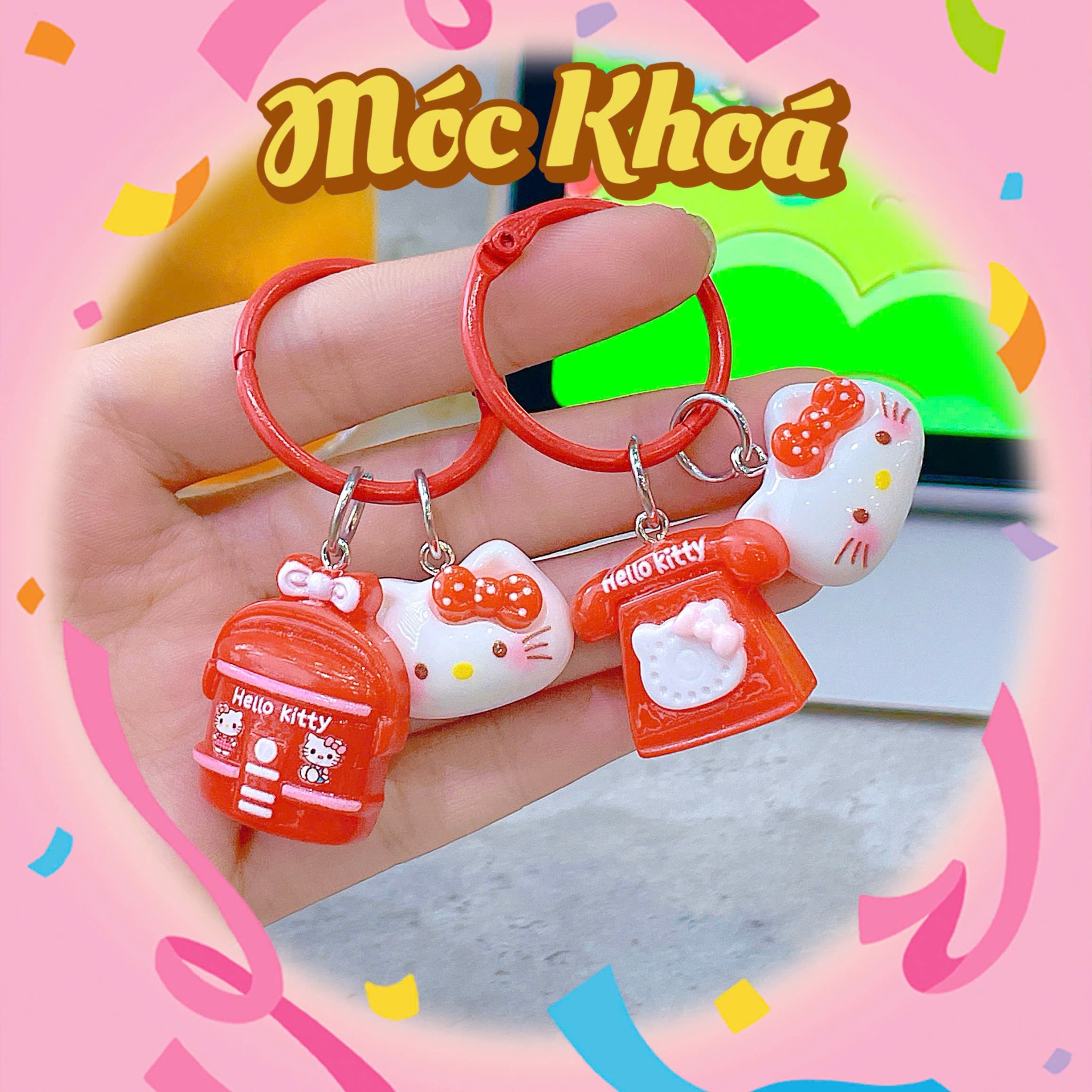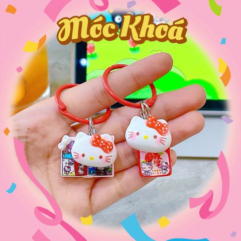 ** Móc khóa mặt kitty kèm sổ/điện thoại/can nước đỏ