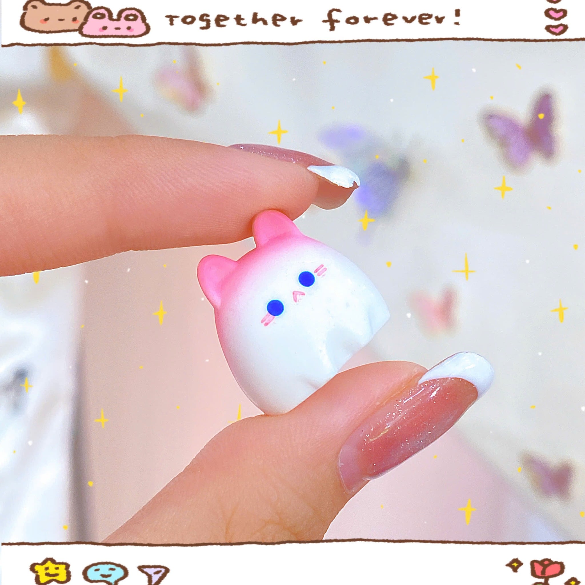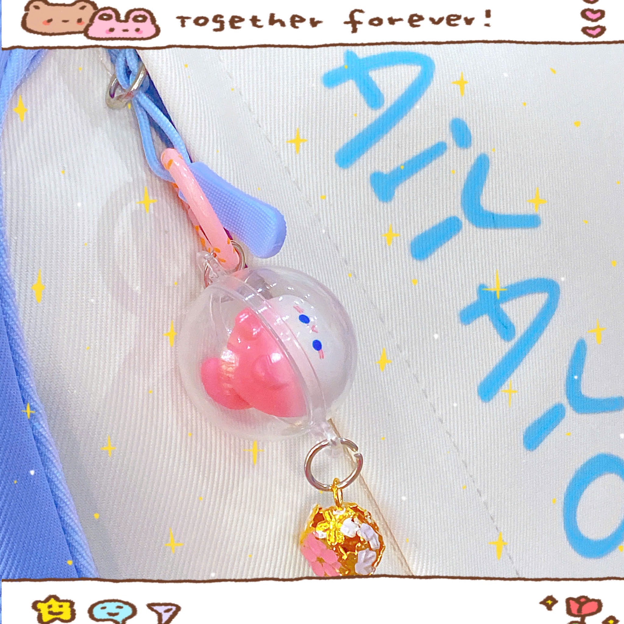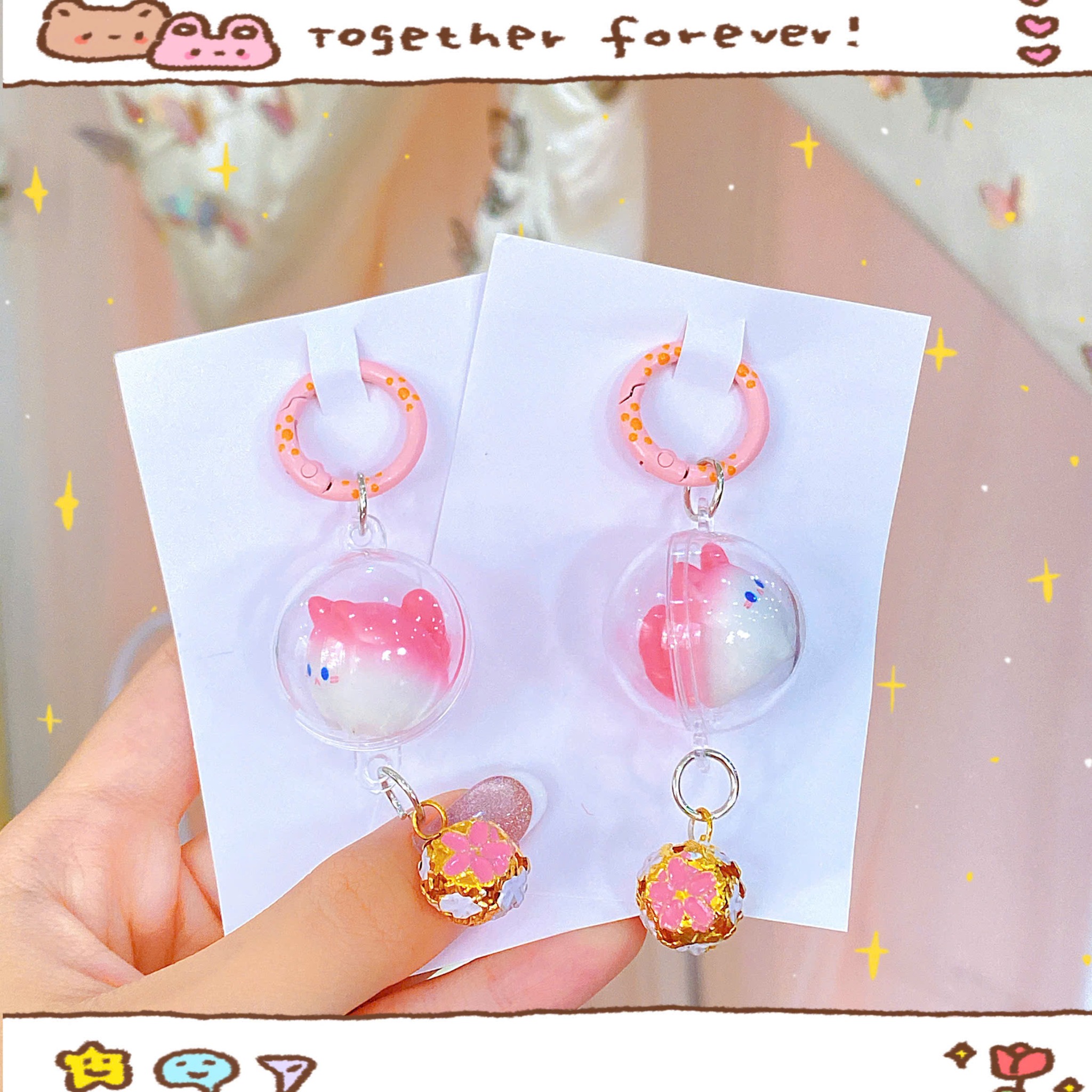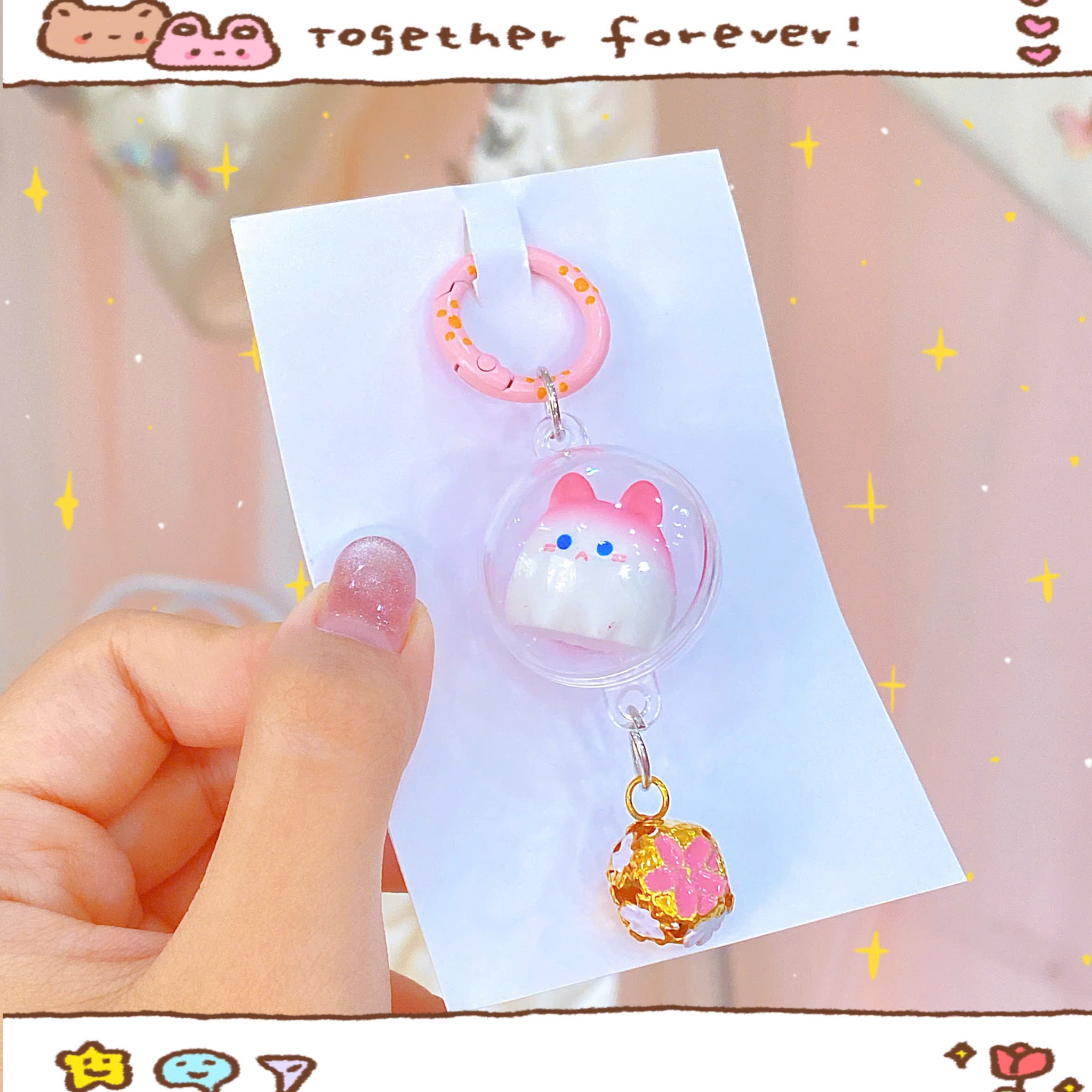** Móc khóa mèo nằm trong quả cầu trong suốt