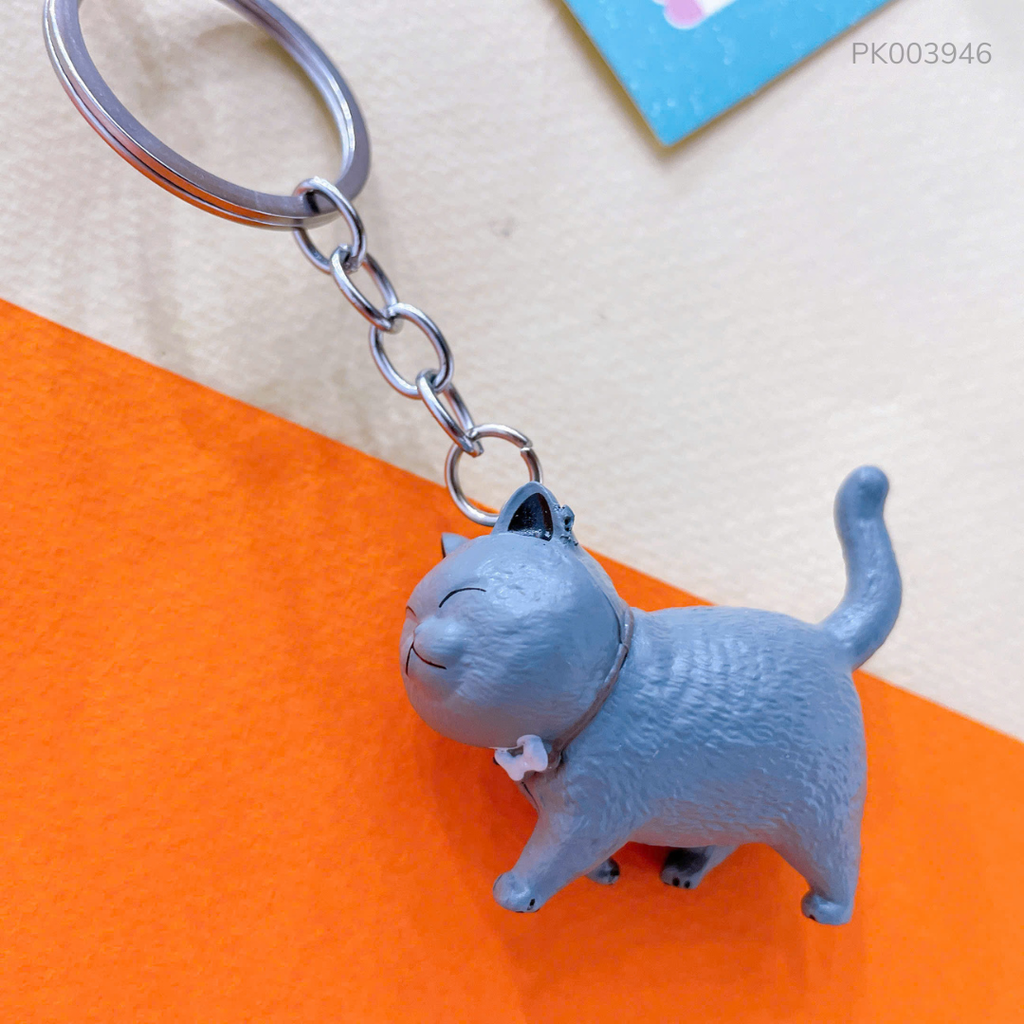 ** Móc khóa mèo xám đeo nơ