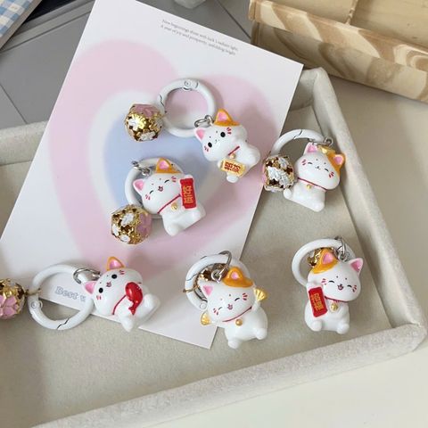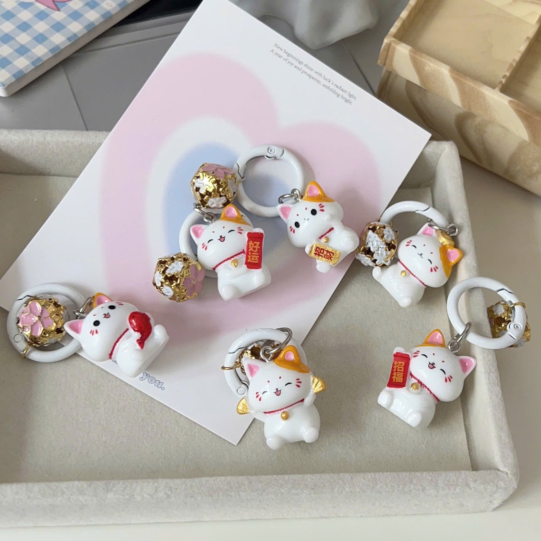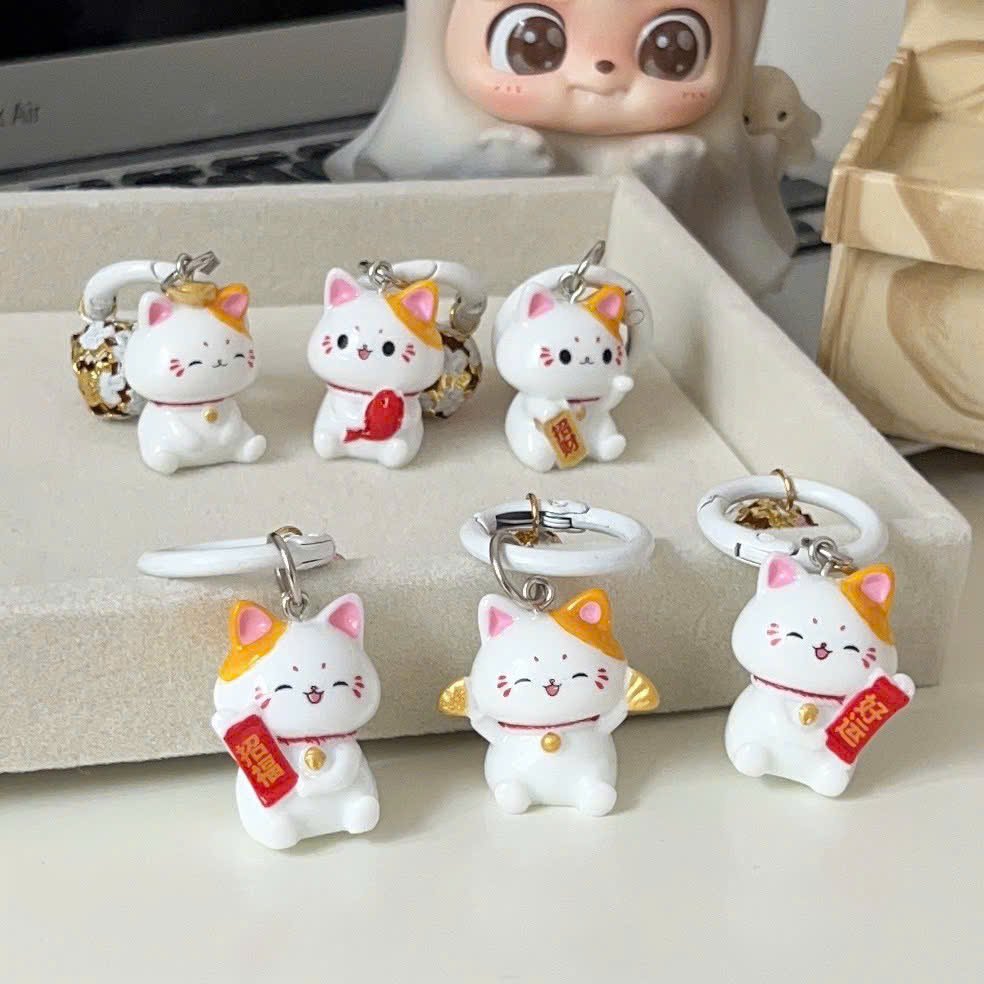 ** Móc khóa bông mèo trắng/mèo chấm bi thêu