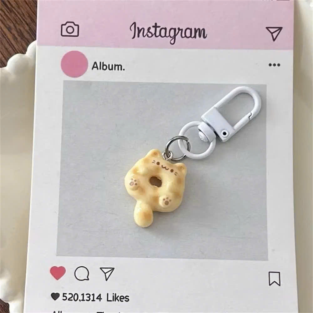** Móc khóa bông mèo trắng/mèo chấm bi thêu