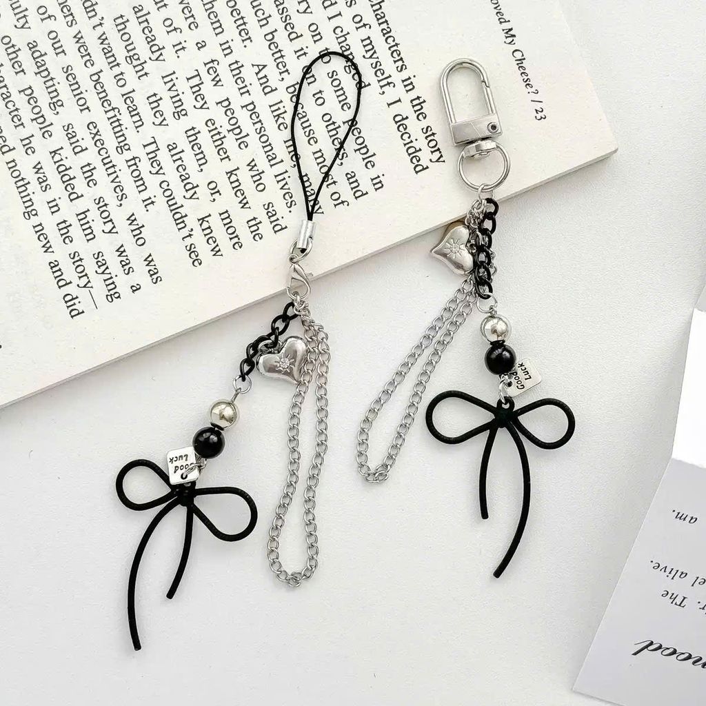 ** Móc khóa nơ đen trái tim bạc