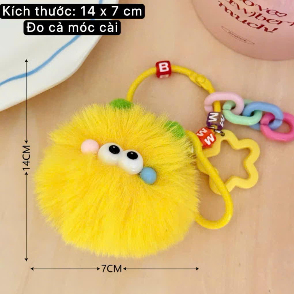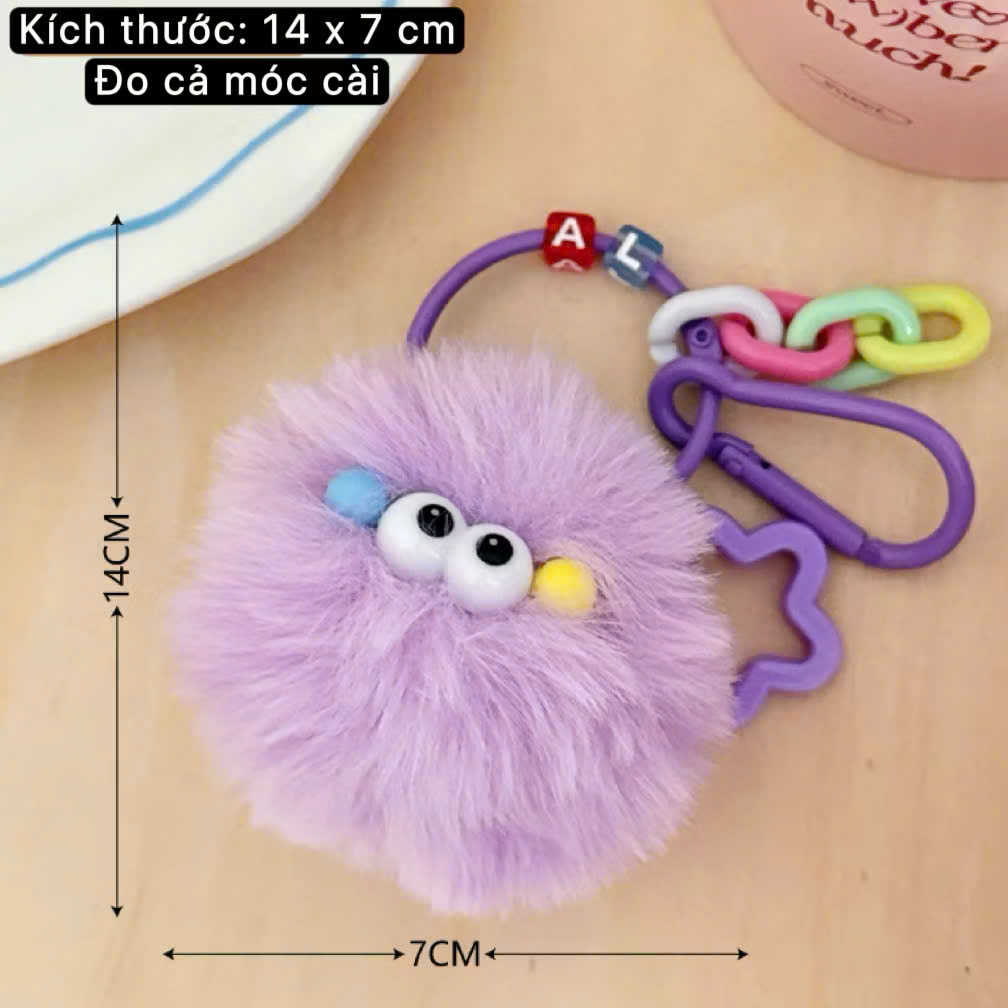** Móc khóa quái vật lông Yalove tím/xanh/vàng