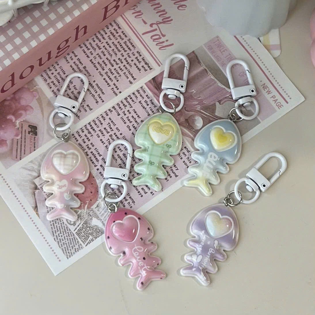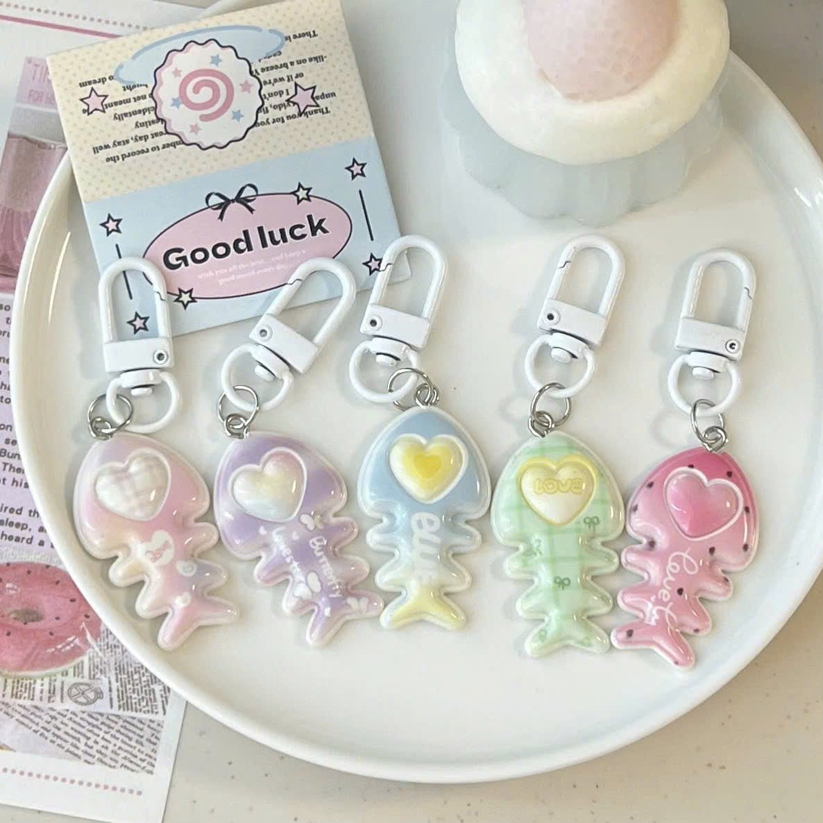 ** Móc khóa xương cá trái tim cầu vồng