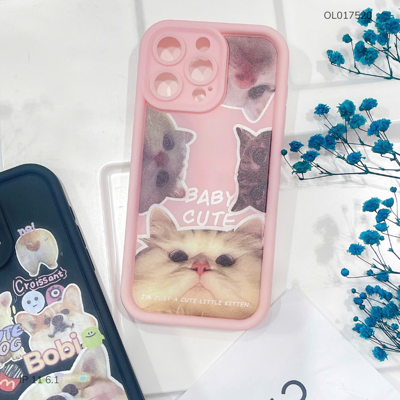 Ốp IP 11 6.1 dẻo hồng camera viền cao 4 mèo baby cute