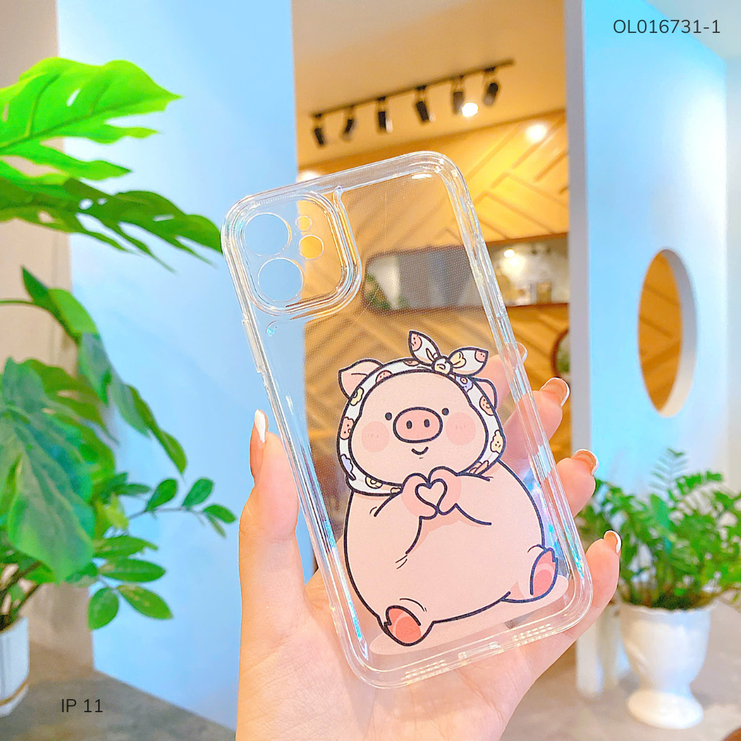 Ốp IP 11 6.1 dẻo trong in hình heo đội khăn
