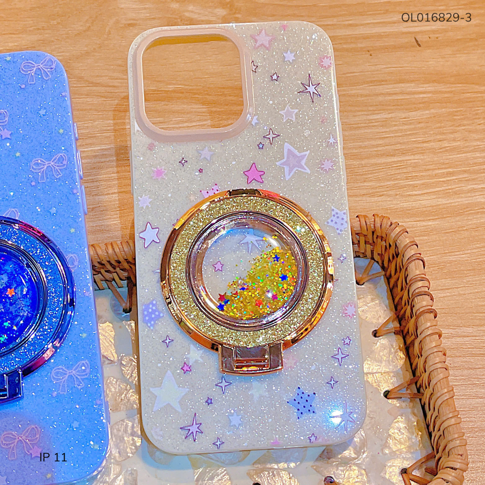 ** Ốp IP 11 6.1 lưng nhũ kim tuyến nhiều hình kèm giá đỡ rời