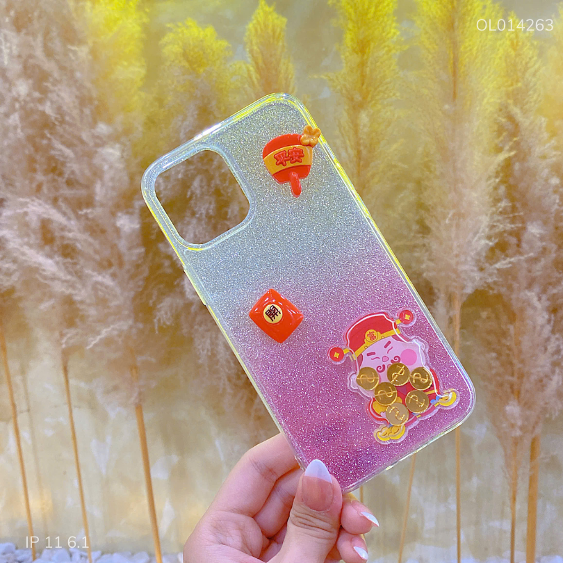 ** Ốp IP 11 6.1 thần tài lắc kim tuyến hồng trắng