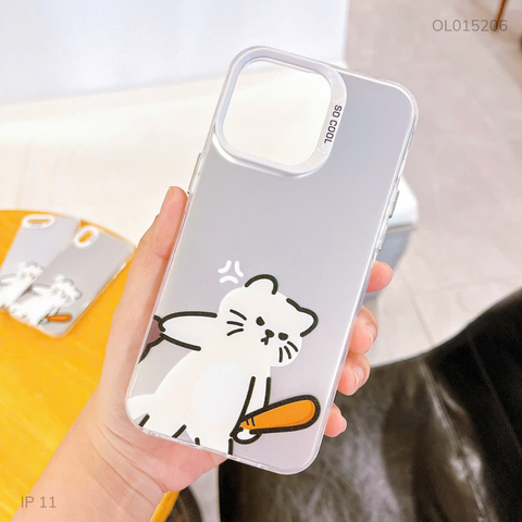Ốp IP 11 6.1 tráng bạc mèo trắng cầm gậy