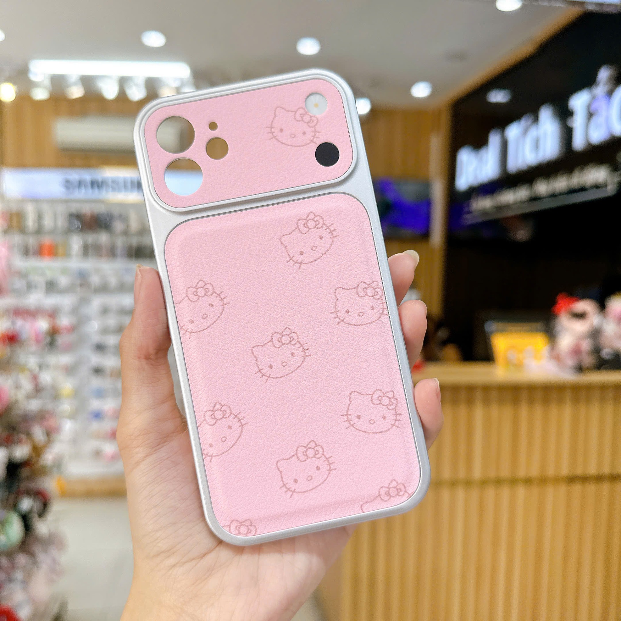 ** Ốp IP 14 Pro Max nền hồng chấm bi magsafe kèm giá đỡ