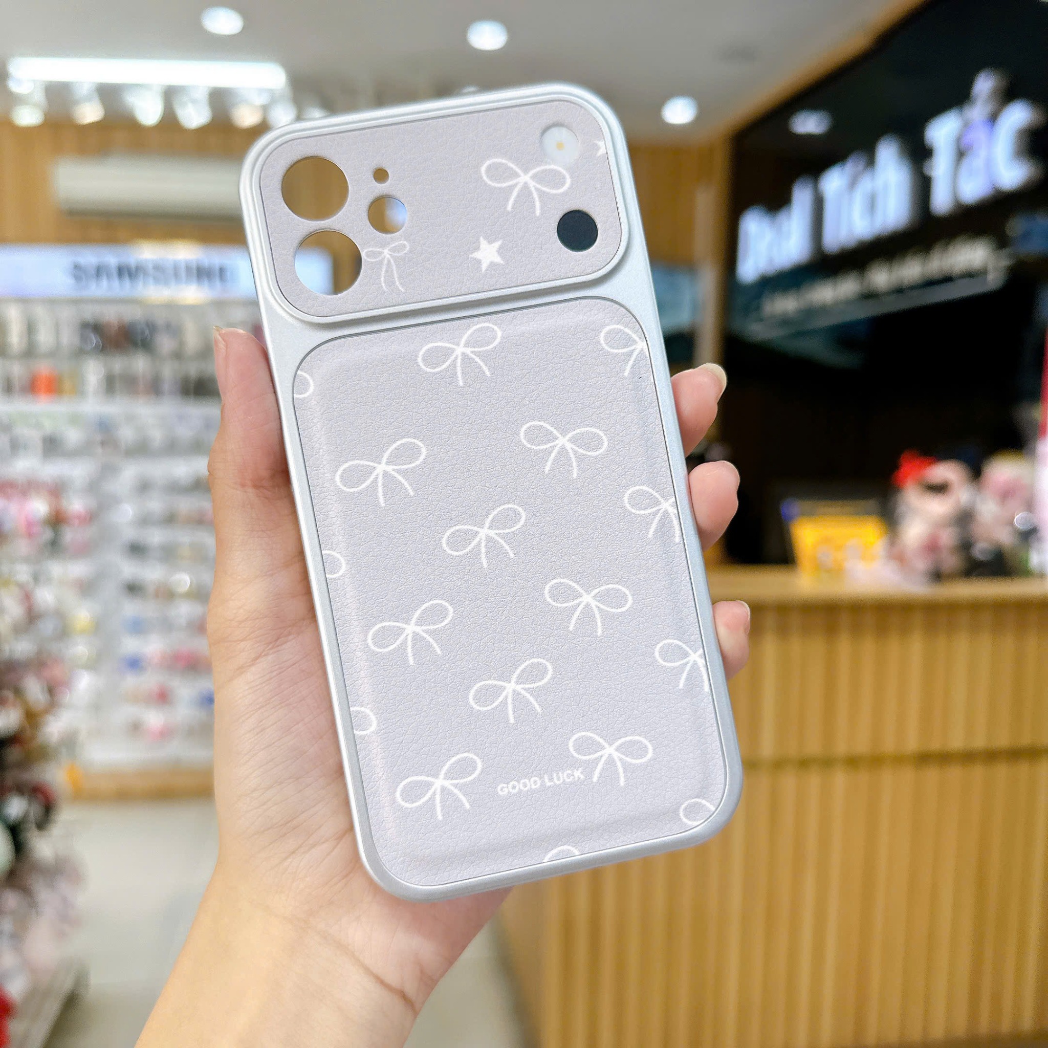 ** Ốp IP 11 6.1 vân da viền dẻo xi bạc camera in hình