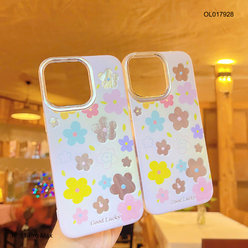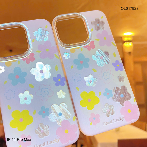 ** Ốp IP 11 Pro Max vân ánh sóng hoa 5 cánh nền hồng Good Lucky