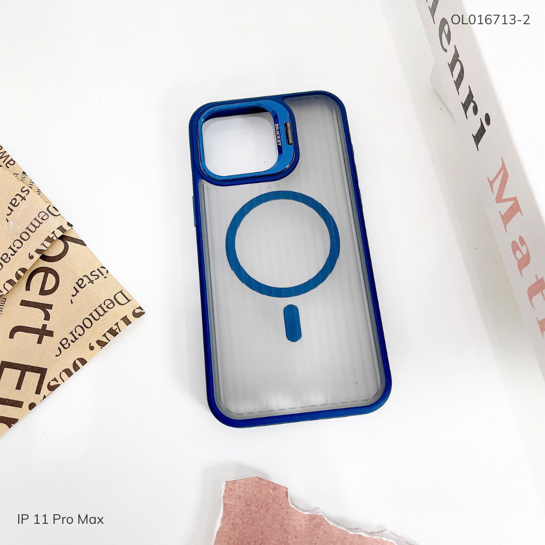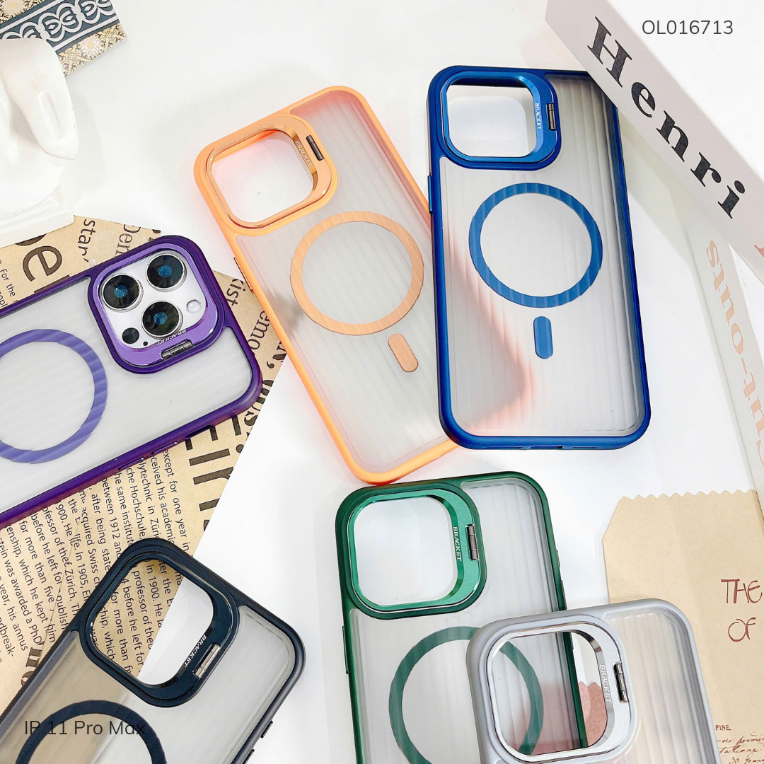 Ốp IP 11 Pro Max X-Level Magsafe nhám sọc đứng viền màu giá đỡ camera