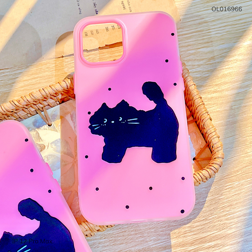 Ốp IP 12 Pro Max 2 lớp mèo đen chấm bi