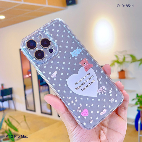 Ốp IP 12 Pro Max dẻo trong in tim lớn và gấu nâu
