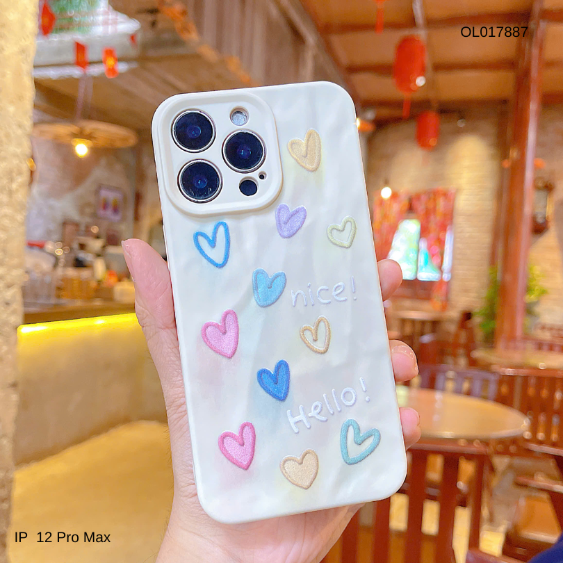 Ốp IP 12 Pro Max dẻo vân giấy nhàu nhiều tim Hello nice