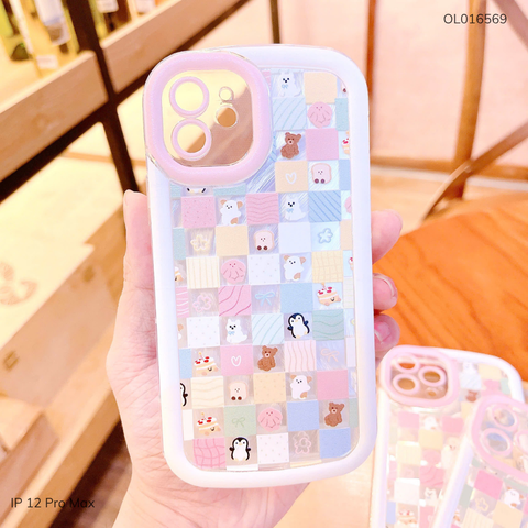 Ốp IP 12 Pro Max dẻo viền nổi nhiều thú kẻ ô vuông