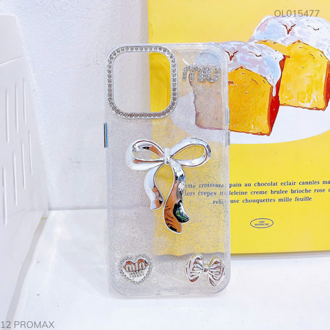 ** Ốp IP 12 Pro Max lưng nhũ kim tuyến nơ bạc MIU