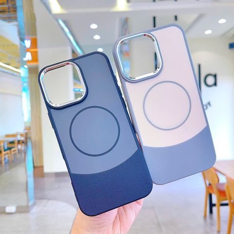 ** Ốp IP 12 Pro Max phối vân da viền camera bạc magsafe