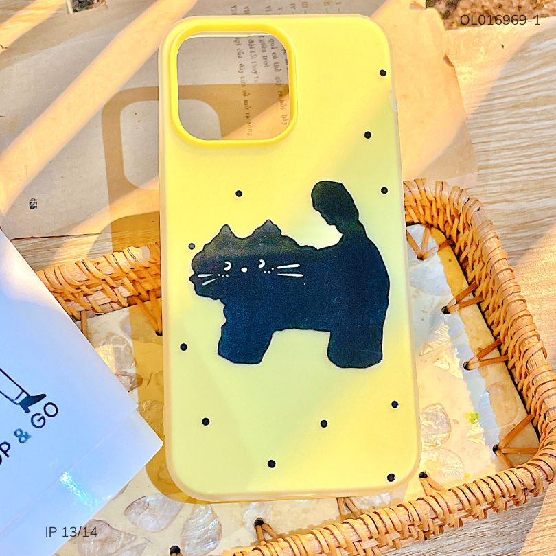 Ốp IP 13/14 2 lớp mèo đen chấm bi